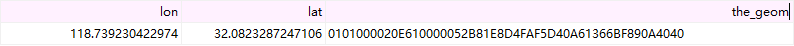 使用st_geomfromtext()方法,将经纬度的坐标转化为geometry坐标,如下所示: