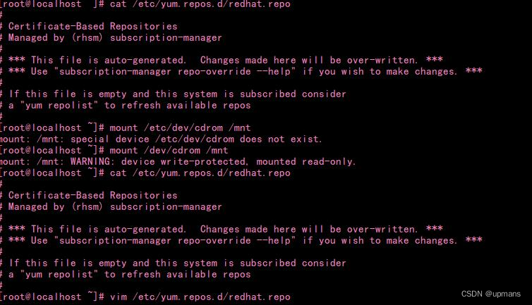 [root@localhost ~]# vim /etc/yum.repos.d/redhat.repo