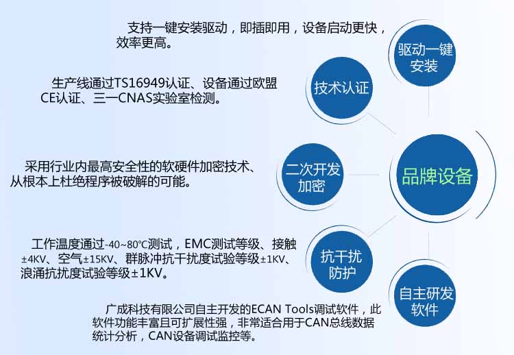 广成科技所有CAN分析仪均完全符合CAN2.0B标准,兼容CAN2.0A,符合ISO11898标准,CAN端支持高速、低速容错CAN标准,也可外接单线CAN转换器扩展支持单线CAN。