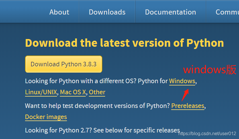 首先,进入下载安装包的链接:https://www.python.org/downloads/