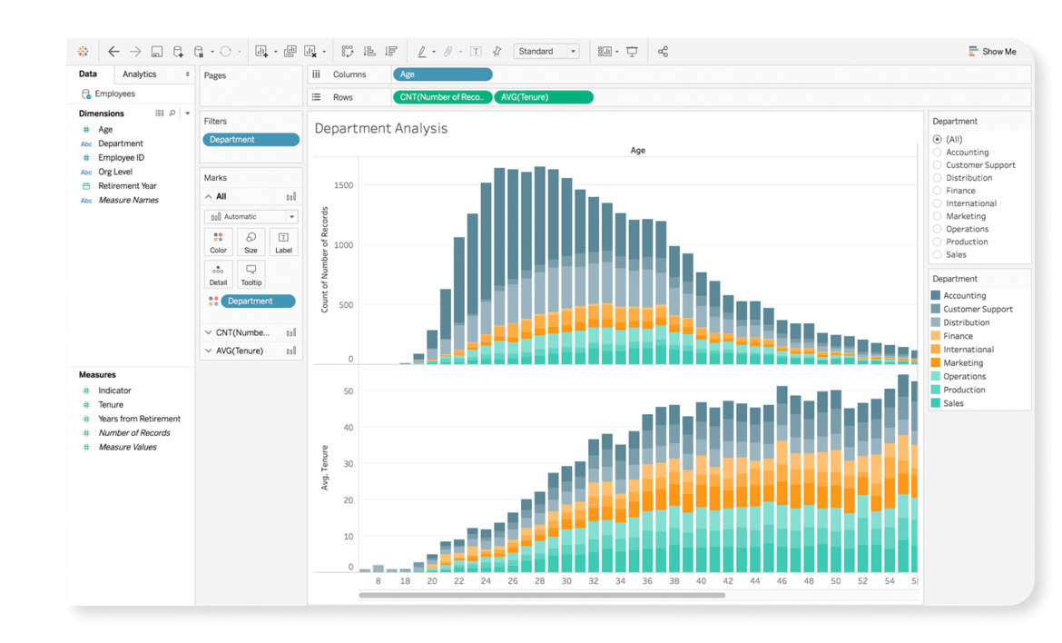 Tableau 是全球广受欢迎的数据可视化平台,以其极致的图形表达能力、灵活的数据交互性著称。用户可通过拖拽方式快速构建交互式仪表盘,适合进行探索性数据分析与动态演示。它在分析自由度上表现突出,尤其适合数据分析师进行多维度、多层次数据挖掘。无论是企业汇报、趋势研究还是商业数据呈现,Tableau 都能提供出色的可视化体验。