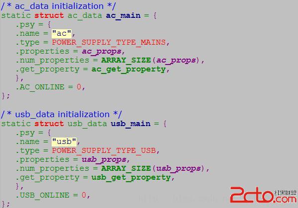 可以看出,在这里将ac、usb及battery三种电源供应设备注册到了power supply core中去了,而相应的全局结构体变量ac_main、usb_main及battery_main作了如下定义: