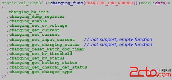 这些枚举类型所一一对应的函数中去,如上面调用关系CHARGING_CMD_GET_CHARGER_TYPE,则是获取charger type,函数原型如下: