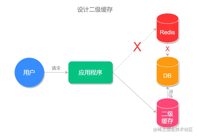 二级缓存指的是除了 Redis 本身的缓存,再设置一层缓存,当 Redis 失效之后,先去查询二级缓存。