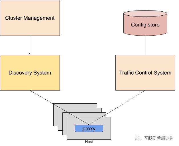 该系统与集群管理接口,以保持服务后端任务的最新信息。然后,这些信息被提供给主机代理,这样代理就可以对最新的实例进行负载均衡。