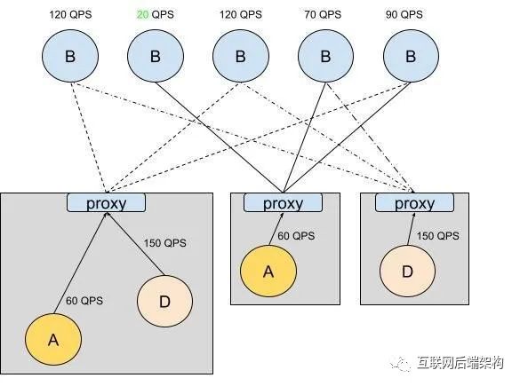 其基本思想是:当主机代理得知被调用者服务接收到的 QPS 数量时,就可以计算出其对整个流量的负载比例。有了这些信息,主机代理可以根据比例动态地决定其子集的大小(即,如果它开始向一个目标服务发出更多的请求,它就应该扩大其子集的大小)。