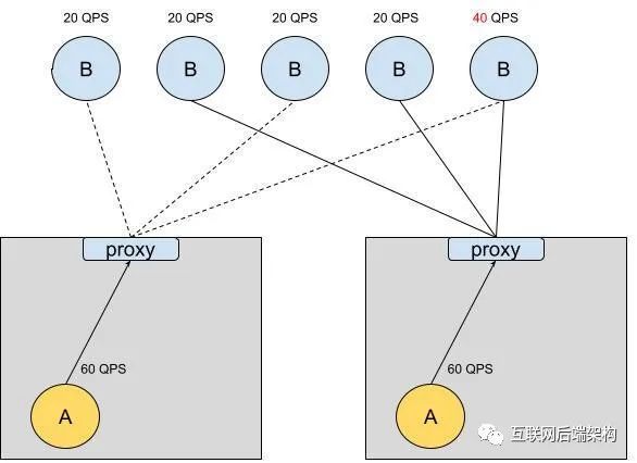 在同一主机中,所有后端任务之间共享主机代理。因此,如果同一主机中的多个服务试图对同一被调用者服务进行 RPC 调用,随机挑选的后端任务子集将比其他任务收到更多请求。
