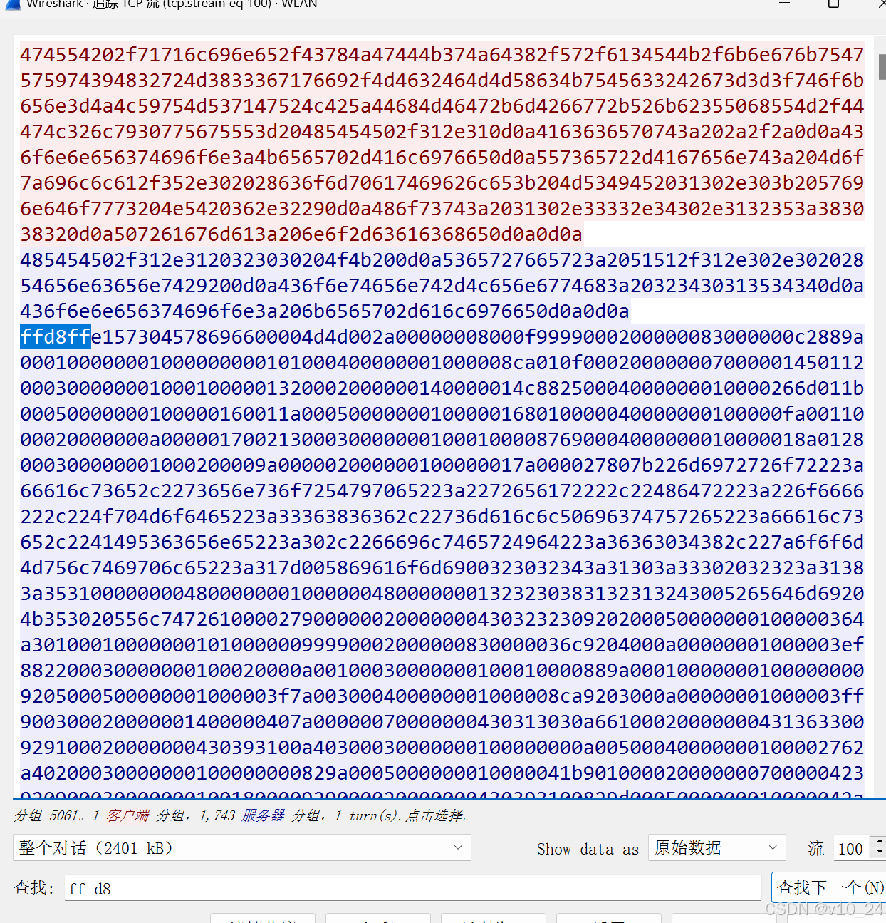 将得到的流量数据全部保存下来为.txt文件,然后将ff d8前面的无用数据全部删除,并将.txt文件改为.jpg文件,即可得到前面由手机发送给电脑的图片。