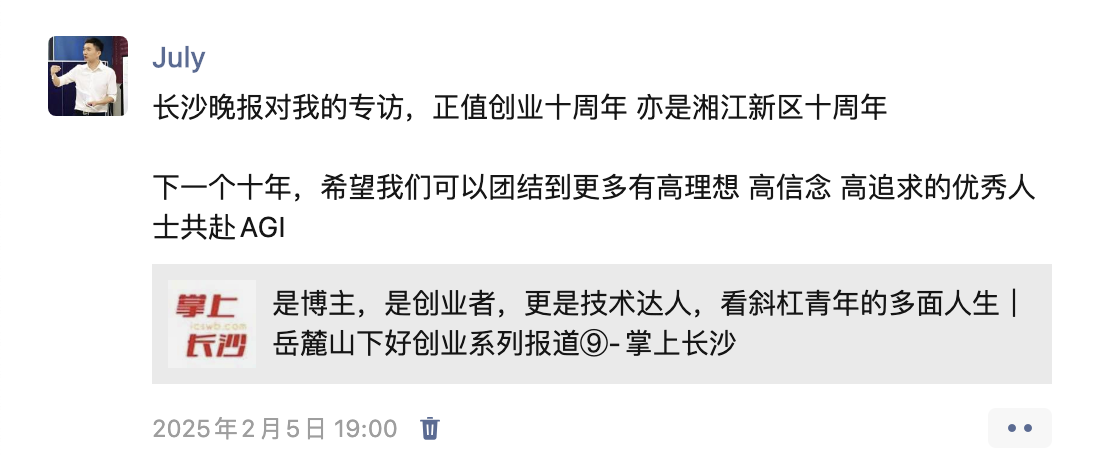 7.3,下月即来长一年, 终于要把长沙团队建立了,作为整个公司的小分队侧重LLM项目开发,意味着拒绝躺平,继续折腾