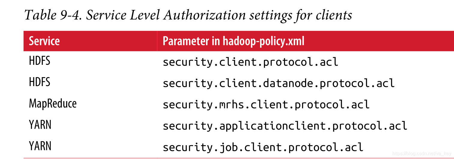 (从上面这个图来看acl定义的范围不限于一个服务,比如将yarn拆成了两个权限控制,所以不能说简单说kerberos就是只能控制到service这一层,而service内部还可继续拆分更细的service。)