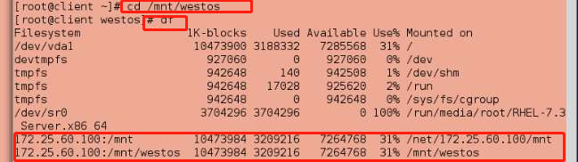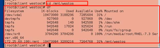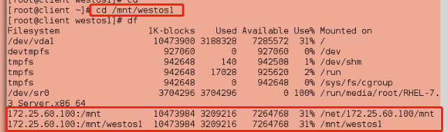 这条命令达到的效果就是在客户端cd /mnt/westos1 就相当于将/mnt/westos1 挂载到172.25.60.100:/mnt/westos1