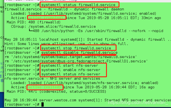 注意:启动和调用NFS服务程序进行文件共享之前,需要使用rpc服务将nfs服务器的ip地址与端口号信息发给client。应此在启用nfs服务之前,还要顺带并启用rpcbind服务程序,并将这两个服务一并加入到开机启动中。