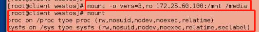 第一种:mount -o vers=3,ro 172.25.60.100:/mnt /media