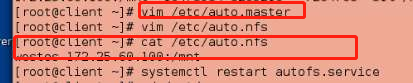 1.客户端:vim /etc/auto.master 写上层挂载目录(/mnt)