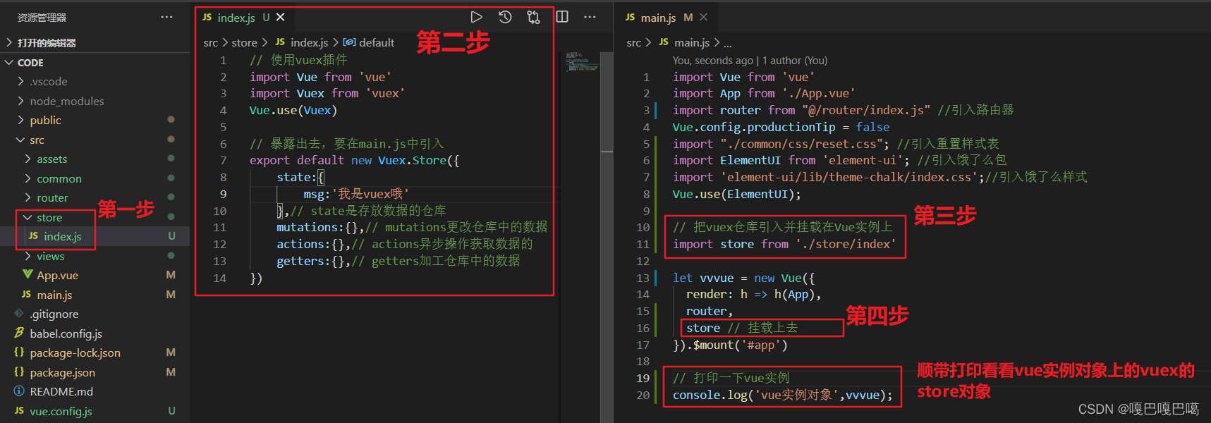 所以vuex就是一个仓库,用来存放数据的。所以我们使用vuex一般会新建一个store文件夹,store单词的中文意思就是商店、仓库的意思