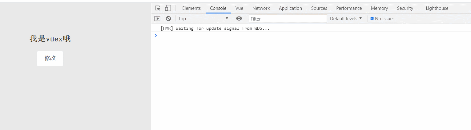 this.$store.commit('vue/moduleChange'); // 以斜杠分割,斜杠前写对应模块名,斜杠后写对应mutations中的方法名