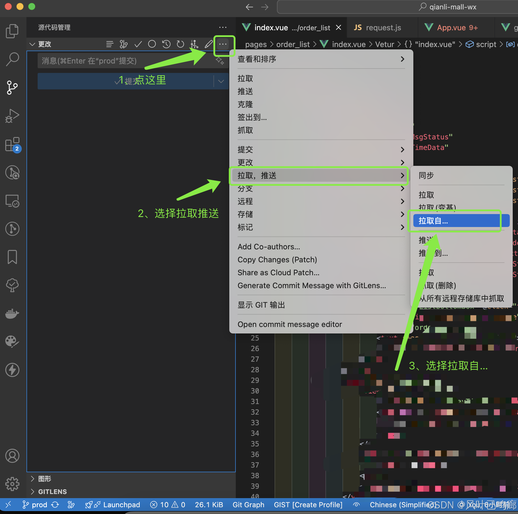 一般在开发中我们直接在开发工具中就能完成这些操作。我平时用vs code比较多,下面以vs code为例。