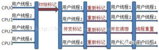 Concurrent mark sweep(CMS)收集器是一种年老代垃圾收集器,其最主要目标是获取最短垃圾回收停顿时间, 和其他年老代使用标记-整理算法不同,它使用多线程的标记-清除算法。最短的垃圾收集停顿时间可以为交互比较高的程序提高用户体验。CMS 工作机制相比其他的垃圾收集器来说更复杂。整个过程分为以下 4 个阶段: