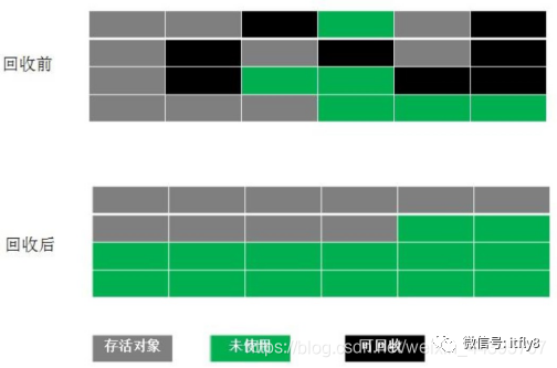 而老年代因为每次只回收少量对象,因而采用 Mark-Compact 算法。