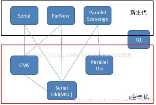 Java 堆内存被划分为新生代和年老代两部分,新生代主要使用复制和标记-清除垃圾回收算法;年老代主要使用标记-整理垃圾回收算法,因此 java 虚拟中针对新生代和年老代分别提供了多种不同的垃圾收集器, JDK1.6 中 Sun HotSpot 虚拟机的垃圾收集器如下:
