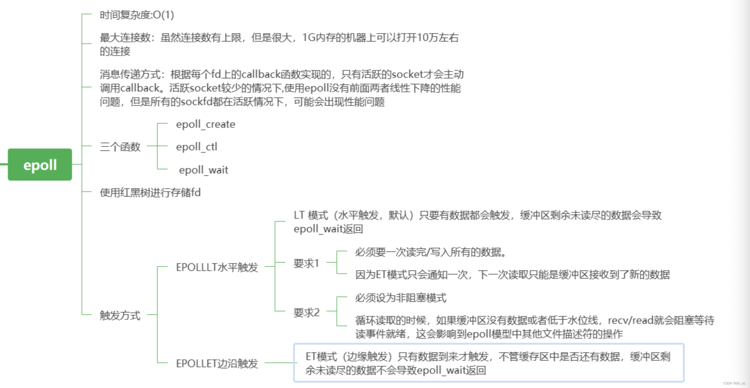 epoll机制:用于高效地处理大量文件描述符的 I/O 事件。- 事件监听和处理:通过设置事件结构体的属性来指定要监听的事件类型,并在事件发生时进行相应的处理操作。