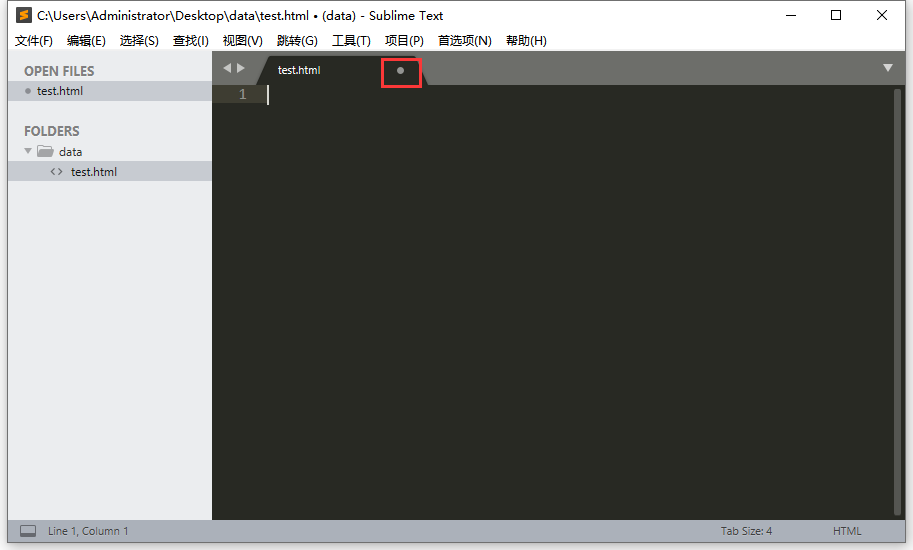 ②我们可以现在桌面创建一个文件夹名为data,然后再创建一个文本名为test.html