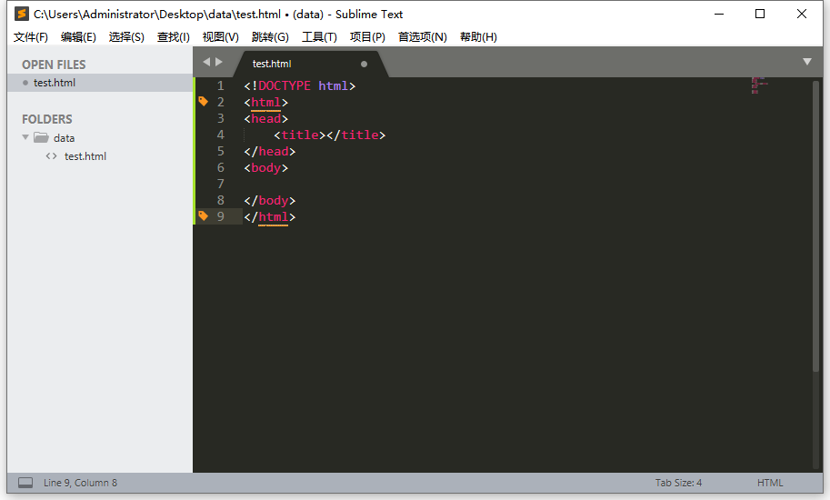 ctrl+s保存代码,打开data文件夹,双击test.html,浏览器就会显示结果