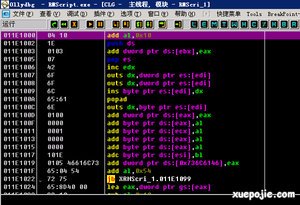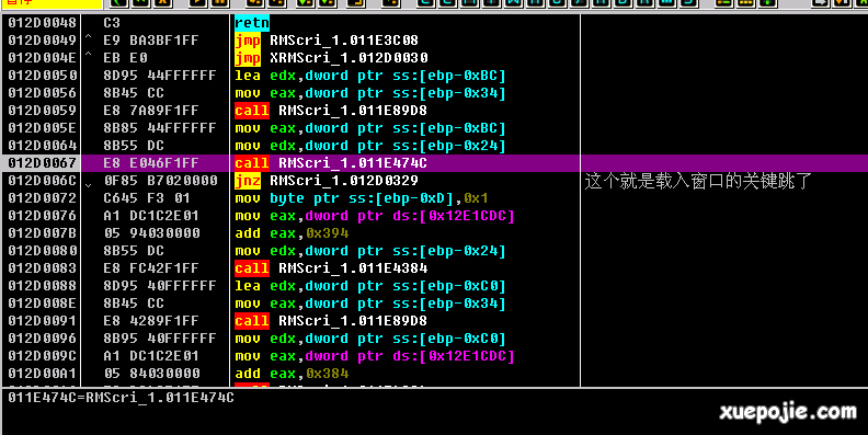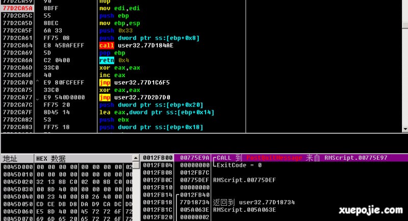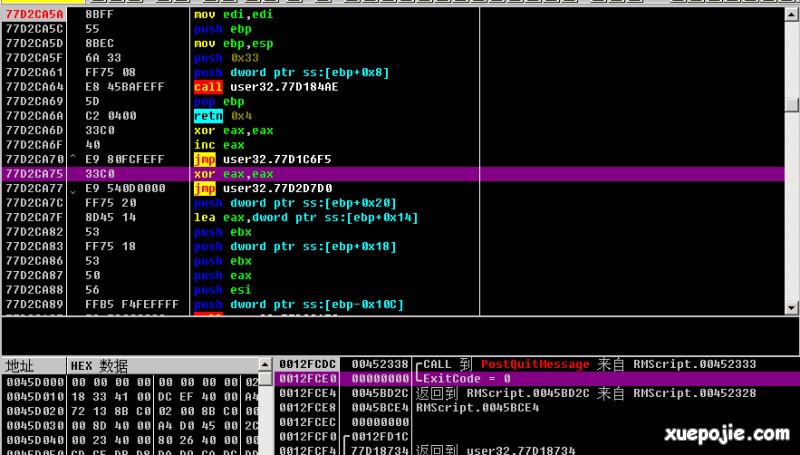 和PostQuitMessage一样 在012D2329 /75 19 jnz XRMScri_1.012D2344