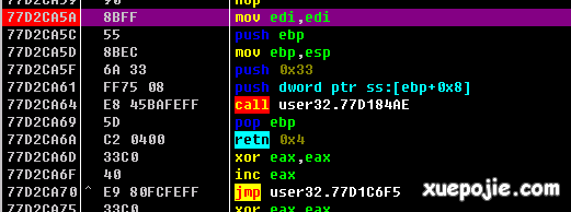 直接在堆栈 call到PostQuiMessage回到程序领空