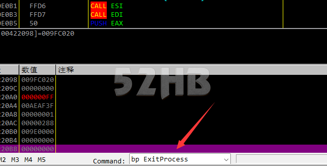 没一会,程序再次退出,OD里面断下,这时候 按K看下堆栈,发现有一个调用很像退出,双击进去看