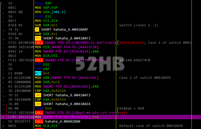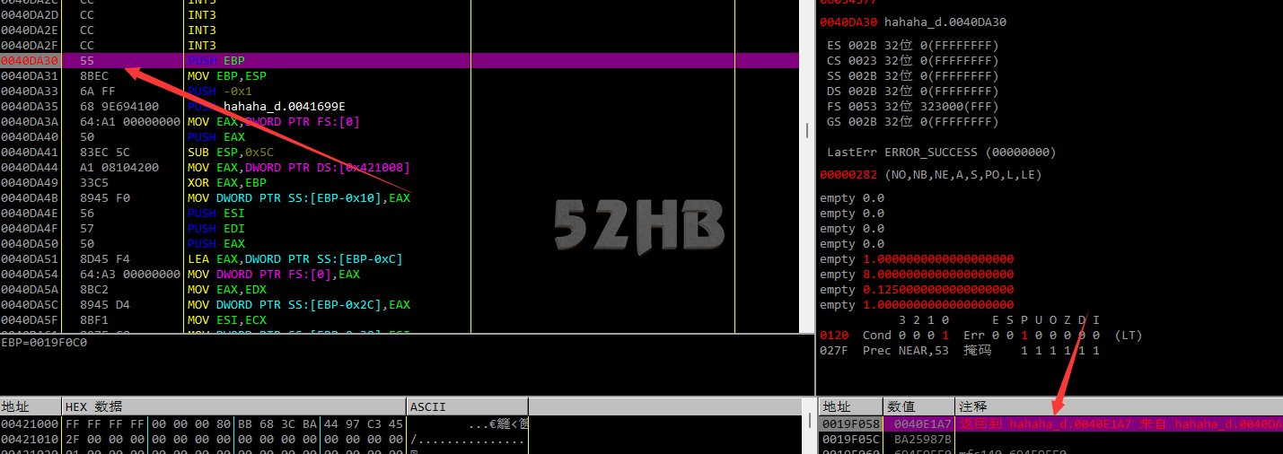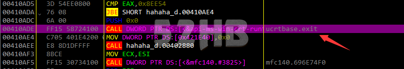 0019EC8C 00410AE4 ucrtbase.exit hahaha_dump.00410ADE 0019EC88 -- 这个很像