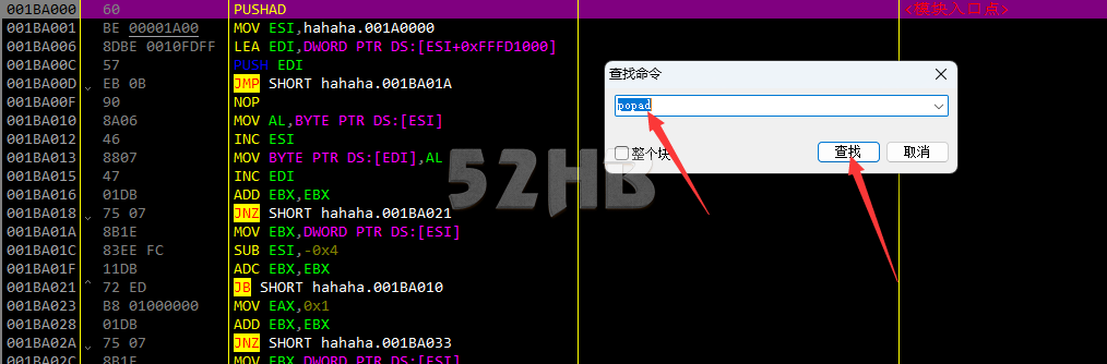 有提示就好办,OD搜索中文字符串,确实找到了这个字符串,点进去!