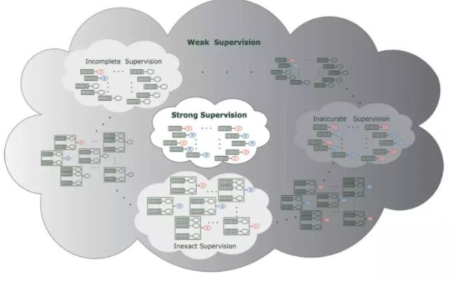 弱监督通常分为三种类型:不完全监督、不确切监督、不准确监督。
