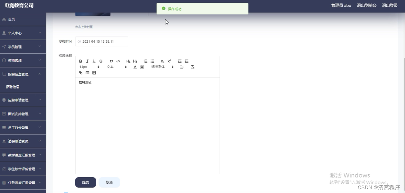 本文讲述了开发一款电竞教育公司系统的过程,利用Node.js、Express、Vue.js等技术构建前端与后端,配合MySQL5.7数据库,旨在提供高效的教学平台,解决电竞教育中的不足,推动行业健康发展。
