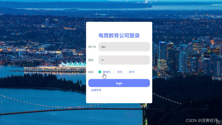 选题背景: 随着电子竞技行业的迅猛发展,电竞已经成为全球范围内的一种新兴文化现象。电竞不仅涵盖了职业比赛、业余赛事,还扩展到了教育领域。电竞教育作为这一领域的衍生物,旨在培养具备专业电竞技能和理论知识的人才。然而,目前电竞教育在课程体系、教学资源以及教学方法上仍然存在诸多不足。为了更好地满足市场需求,本毕业设计题目旨在开发一款电竞教育公司系统,通过前端技术(HTML+CSS+JavaScript+Vue)与后端技术(Node.js+Express)的结合,实现一个高效、便捷的电竞教学平台,同时使用MySQL 5.7作为数据库支持,以提供稳定可靠的数据存储和管理。