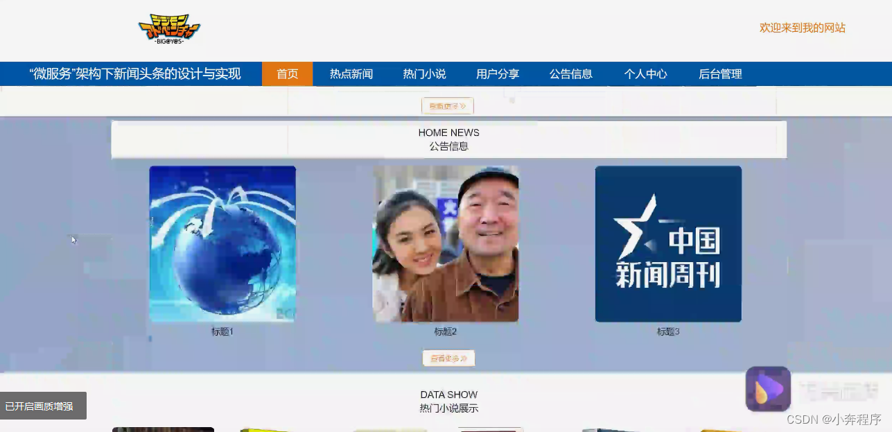 选题背景: 在当今信息化社会,新闻头条作为信息传播的重要途径,已经深入人们的生活。随着互联网技术的不断发展,传统的新闻头条系统已经无法满足用户对于实时性、个性化和互动性的需求。因此,基于微服务架构的新闻头条系统应运而生。微服务架构是一种将复杂系统拆分为多个独立的、可独立部署和扩展的服务的方法,这种架构可以提高系统的可维护性、可扩展性和可靠性。本毕业设计题目旨在利用前端技术(HTML、CSS、JavaScript、Vue)和后端技术(Node.js、Express)以及MySQL数据库,实现一个基于微服务架构的新闻头条系统。