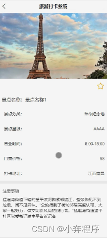 随着社会的发展和人们生活水平的提高,旅游已经成为了人们休闲娱乐的重要方式之一。在旅游过程中,人们喜欢记录自己的行程和所见所闻,分享给亲朋好友或者社交媒体上的关注者。因此,一个能够方便用户记录、分享和查找旅游景点信息的打卡系统应运而生。本毕业设计题目旨在开发一款旅游打卡系统,通过前端技术(HTML+CSS+JavaScript+Vue)和后端技术(Node.js+Express)的结合,以及MySQL数据库的支持,为用户提供一个简洁、易用的旅游打卡平台。