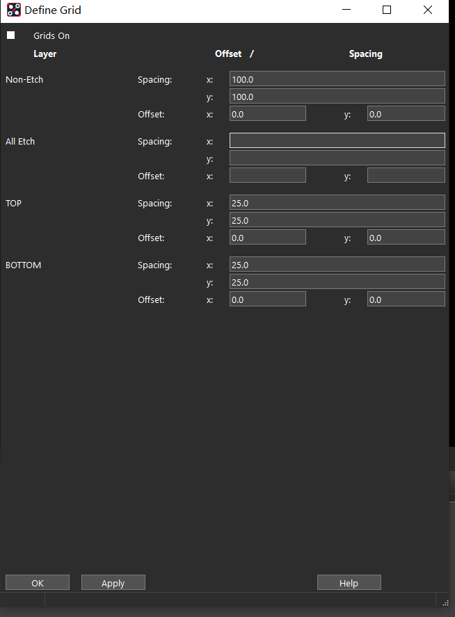 如果我们是要画封装的情况,我们设置格点的大小可以在non-etch这里设置