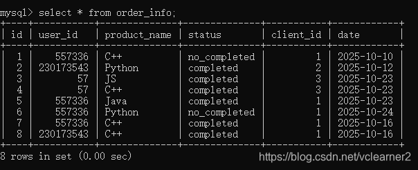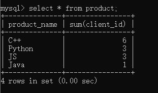 create table product select product_name,sum(client_id) from order_info group by product_name;
