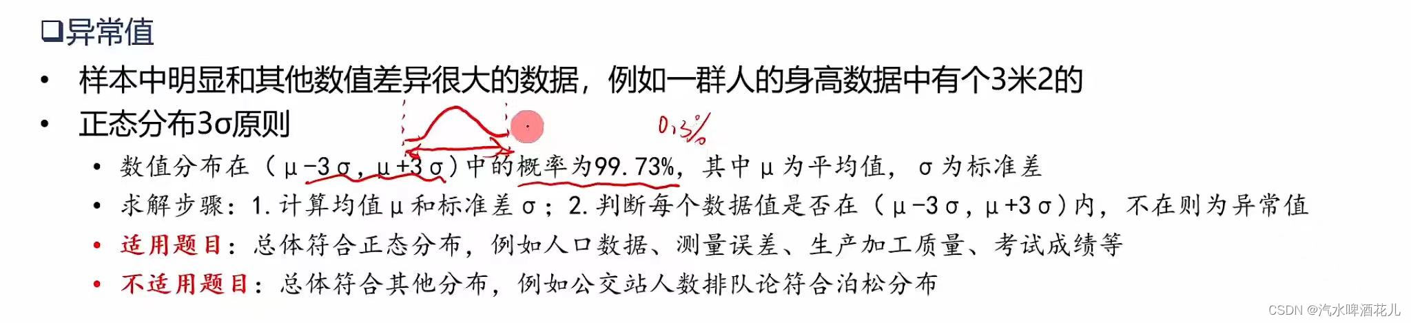 2.找异常值:正态分布(不适合排队论) 在正态分布中σ代表标准差,μ代表均值,x=μ即为图像的对称轴.
