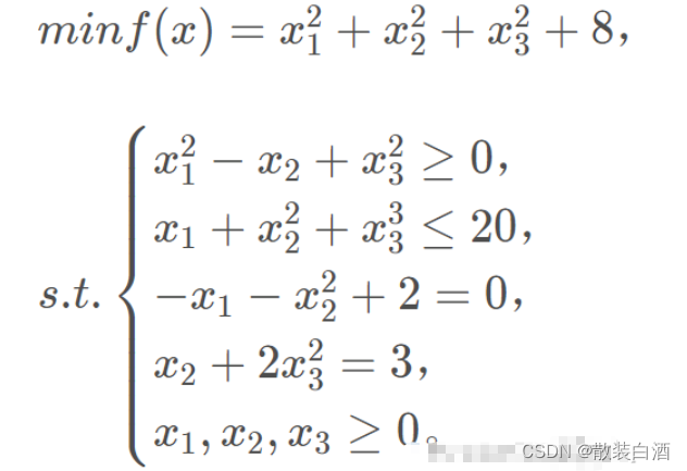 x(1)+x(2)^2+x(3)^3-20]; %非线性不等式约束