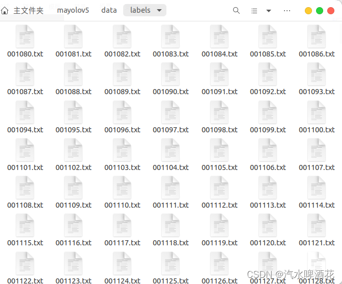 (4)labels文件夹通过运行voc_label.py文件,存在xml文件夹转换的txt文件。