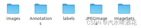 解压完yolov5的代码文件,data文件内新建五个文件夹:Annotations、images、ImageSets、JPEGImages、labels。
