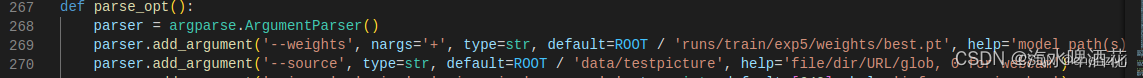 九、可以测试自己训练后的权重文件了。打开detect.py更改这两行