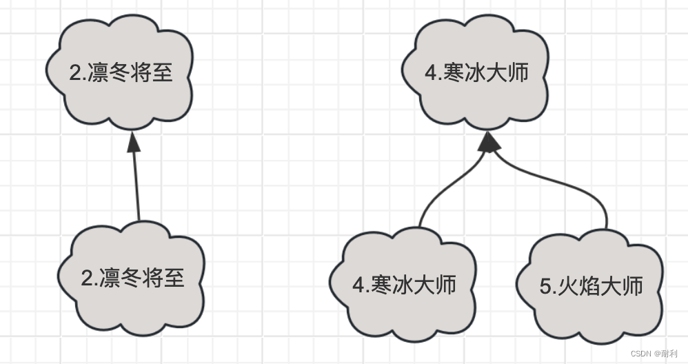 现在,让我们聚焦到根是《0.一往无前》和《3.逍遥自在》的这两个树状结构。