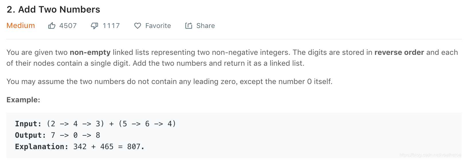 public ListNode addTwoNumbers(ListNode l1, ListNode l2) {
