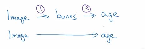 像通过儿童手骨X光预测年龄,没有这么多数据集,即手骨与年龄的标注数据集训练,但可以让其识别骨头,然后拿骨头取查表来判断年龄
