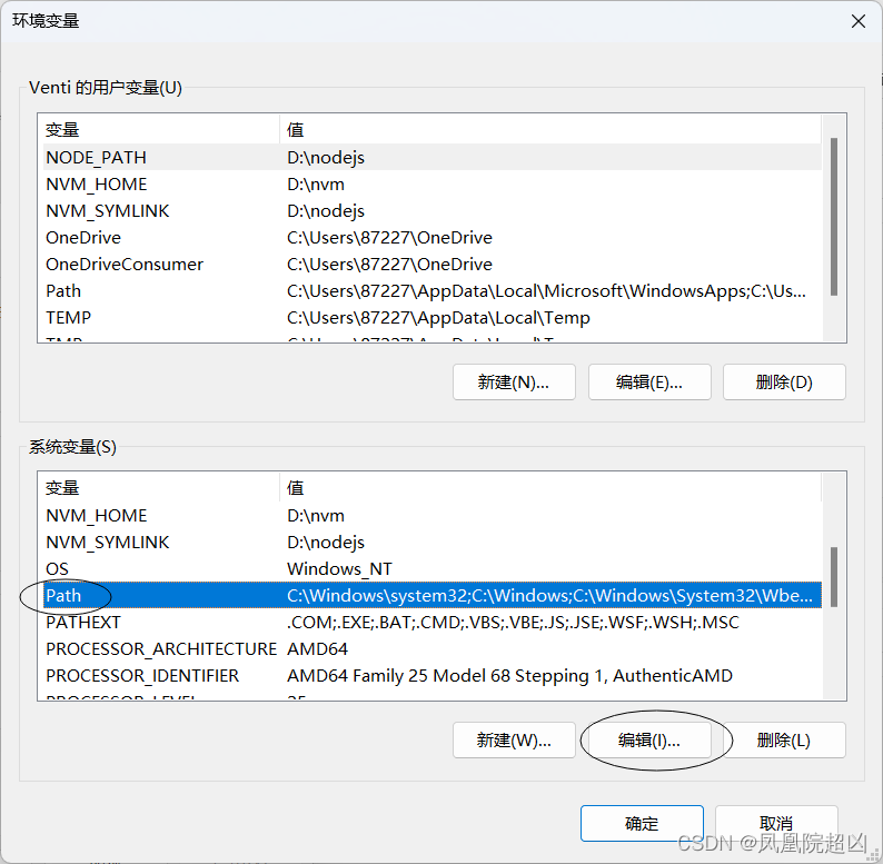 3.系统变量里的Path变量里添加node安装的绝对路径