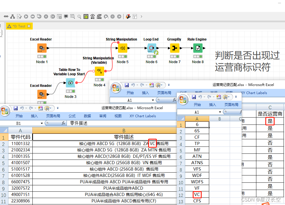 本文介绍使用KNIME平台通过循环节点和正则表达式批量判断零件描述中是否包含特定运营商标识符的方法。