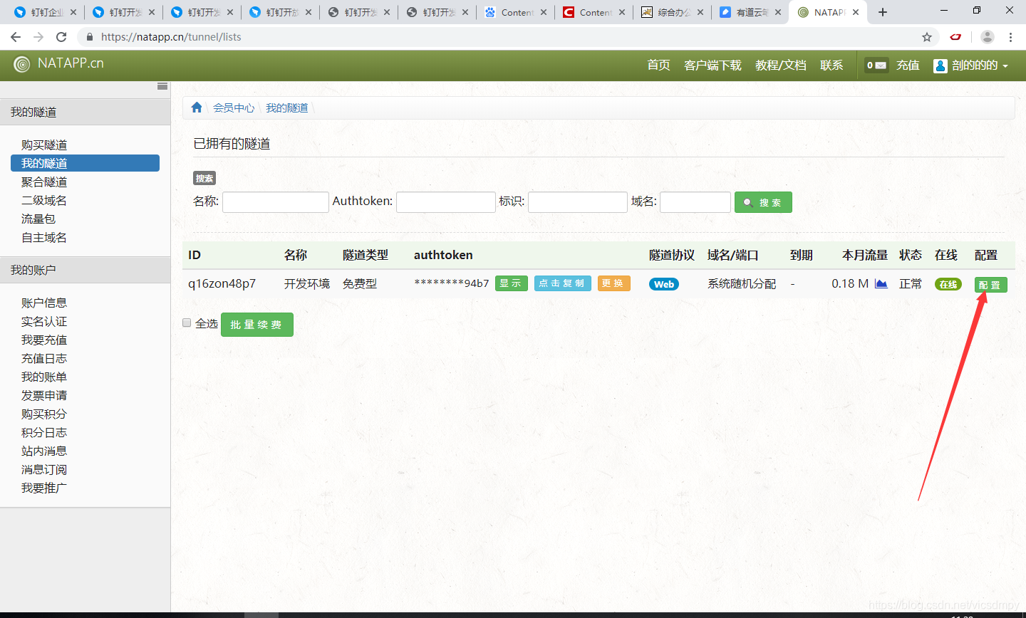 然后点击我的隧道,点击配置